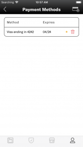- To add Payment Methods navigate to the User Profile by tapping the icon in the bottom right corner.