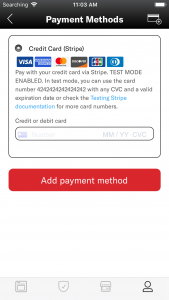 - To add a payment method tap on the credit card icon in the top right corner, and fill out the required information.