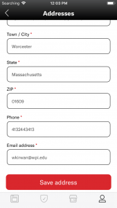 - To view your billing and shipping address simply navigate to the User Profile by tapping the icon in the bottom right corner.
